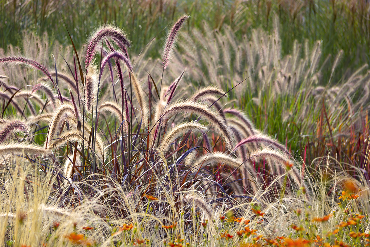 Ornamental grasses have many uses in the landscape. Their wispy, graceful foliage adds interesting form and texture to both beds and borders. Taller species make effective screens while medium-sized species combine well with foundation plantings around the home. Shorter species can be incorporated into plantings of annuals or perennials, or they can be planted in masses for an interesting carpet bed effect. Spreading or running species are effective in stabilizing soil on steep banks or attractively occupying an area that is difficult to maintain. All ornamental grasses flower (most producing panicles, racemes or spikes), giving them additional appeal. While the flowers of most are not especially colorful, they do add interest and appeal and often are produced in late summer or early fall — a time when the garden could use a bit of change.